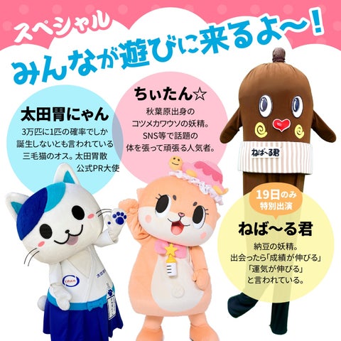 さらに、ゆるキャラのちぃたん☆やねば~る君も登場します。