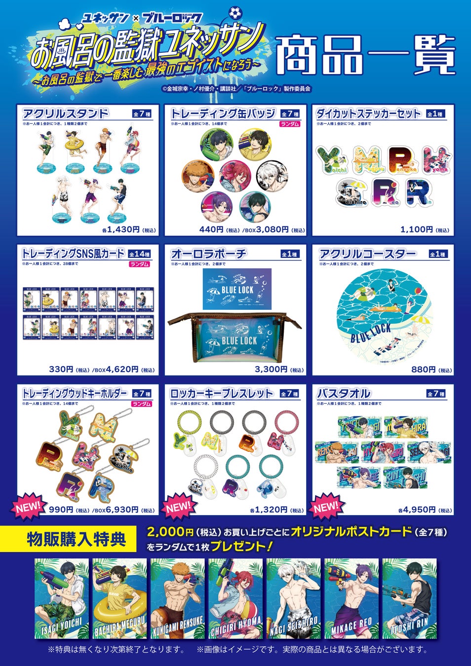 ユネッサンで開催中のブルーロックイベントでは、主人公「潔 世一」を含む7人の人気キャラクターが「お風呂の監獄」を楽しむストーリーで称号を競っています。
