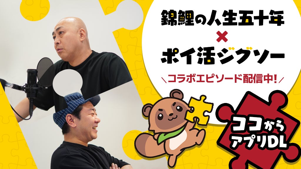 株式会社ファングローバルは、ポイ活ゲームアプリ「ポイ活ジグソー」とお笑いラジオアプリGERAの『錦鯉の人生五十年』とコラボレーションを行い、2024年4月29日から特別エピソードを公開します。