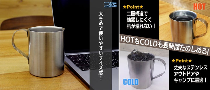 燕市製の高品質なマグカップで、アウトドアでも使いやすい仕様となっています。