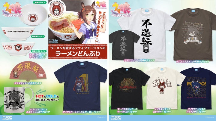 『ウマ娘 プリティーダービー』の新グッズが登場!ファインモーション ラーメンどんぶりや各キャラクターのTシャツなどがラインナップされています。