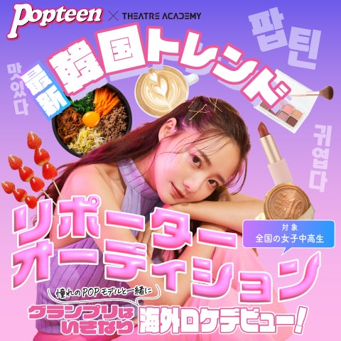 テアトルアカデミーとPopteenのコラボオーディション『テアトルアカデミー×Popteen 最新韓国トレンドリポーターオーディション』が開催されます。