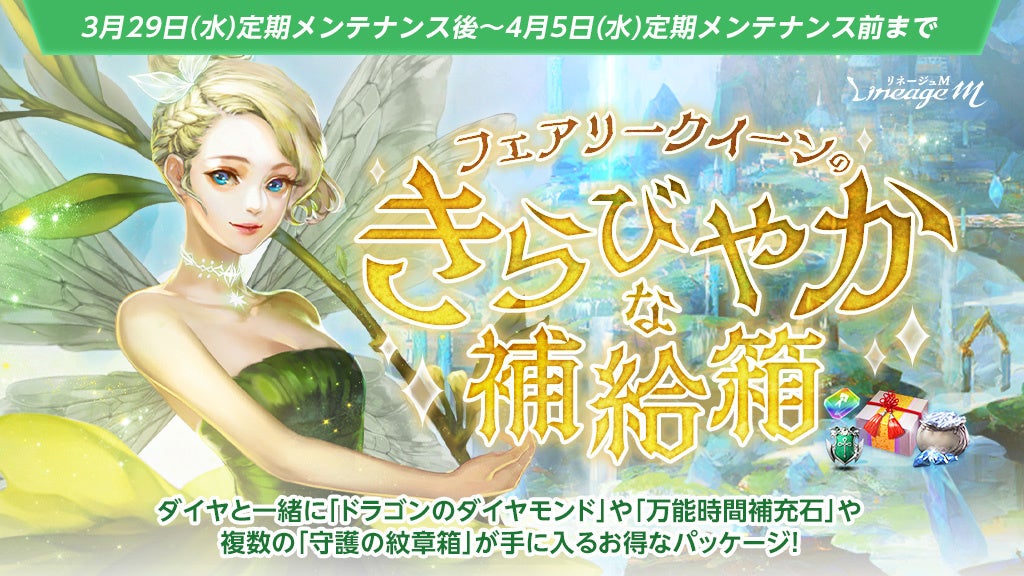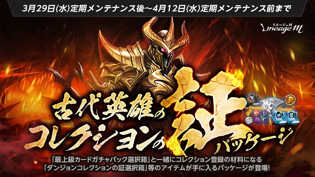 PCオンラインRPG「リネージュ」のモバイル版タイトル『Lineage M(以下、リネージュM)』のサービス、運営をしているエヌ・シー・ジャパン株式会社(東京都港区、代表取締役:金 澤憲(キム テクホン) 以下、エヌシージャパン)は、2023年3月29日(水)にエイプリルフールイベント「リズのいたずら大作戦」の開始、新規アイテムコレクションの追加、「古代英雄のコレクションの証パッケージ」含む新たなパッケージの登場をお知らせします。