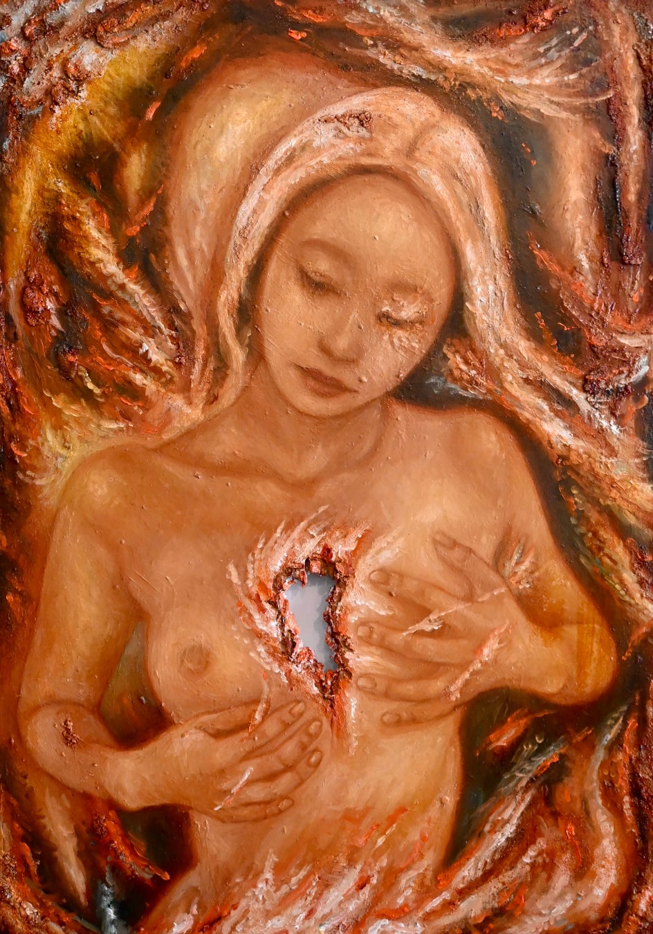 後藤は光と影を巧みに使い、神話や伝承を再構築し、山中は抽象的な表現で人間性を超越した存在を描いています。