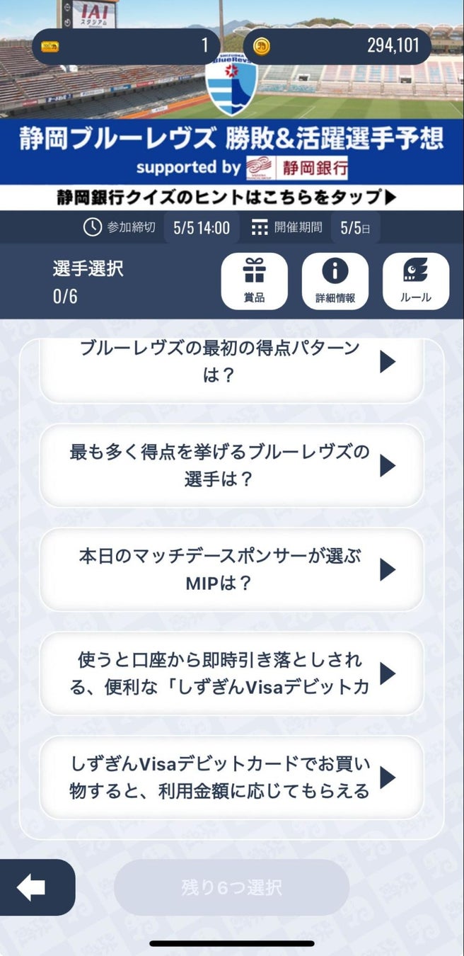 また、静岡銀行の「しずぎんVisaデビットカード」に関するクイズもあります。