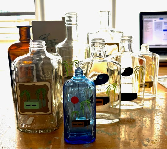 音楽に関連する作品や7インチジャケット・スリーブの販売があり、瓶にデザインされたアート作品も展示されます。