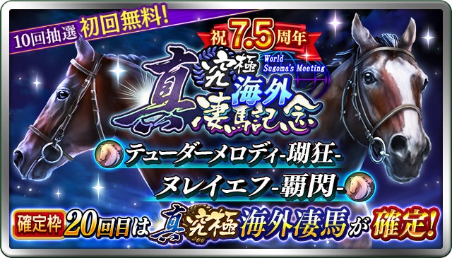 期間限定の真・究極凄馬や海外凄馬も登場し、抽選会や競馬予想キャンペーンも実施されます。