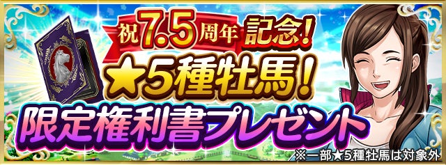 • 種牡馬交換券や新アイテムプレゼント、★5種牡馬や凄馬の限定権利書獲得