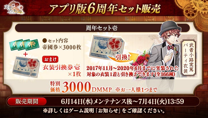 アプリ版6周年を記念して、お得なセットの販売を実施いたします。
