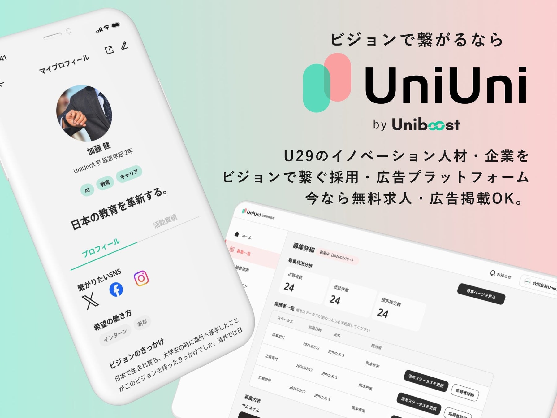 UniUniはビジョンに基づく採用サービスで、現在は無料で求人掲載が可能です。