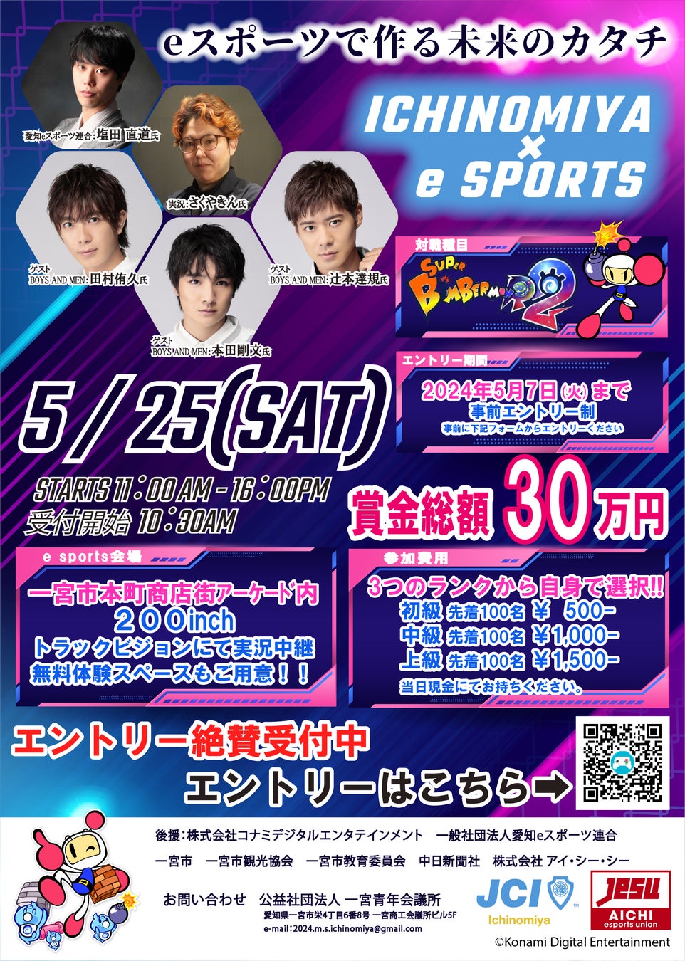 一宮市で開催されるeスポーツ大会は、コナミの『ボンバーマン』を使用し、3つのランクから選択できます。