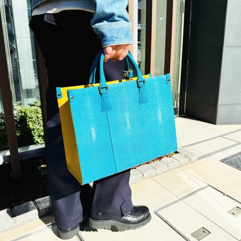 代表の谷本氏は、エイ革の美しさやパワーを大切にしています。