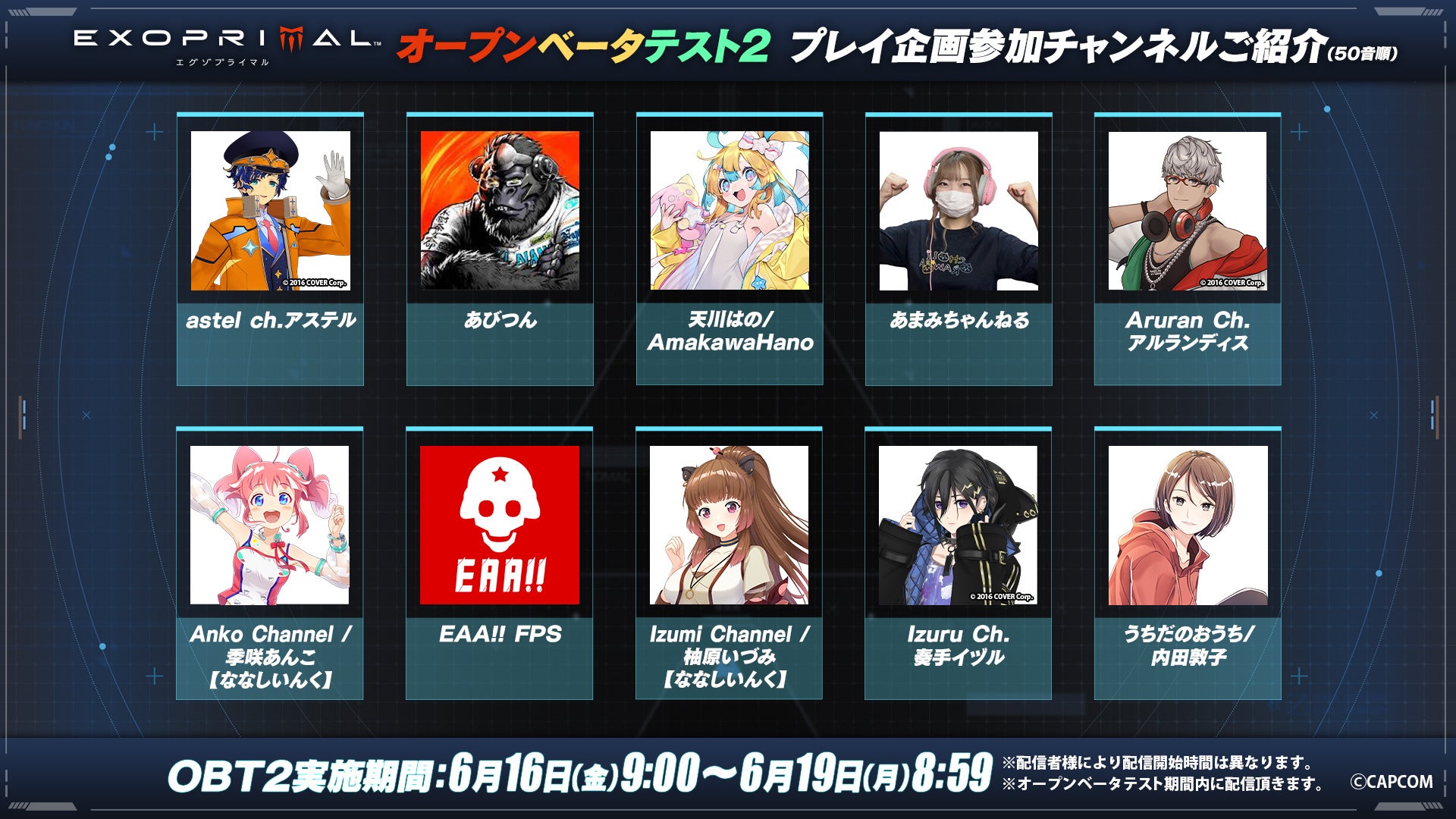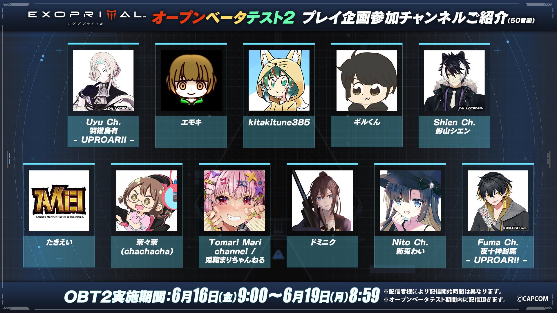 - カプコンの新作ゲーム『エグゾプライマル』の第2回オープンベータテストが6月16日から19日まで開催される。