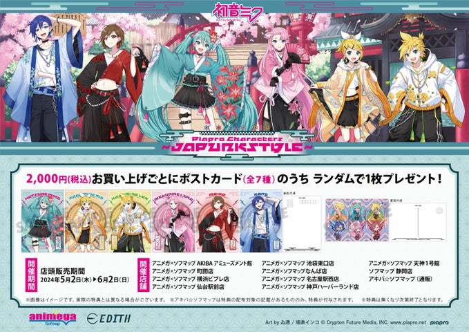 アニメガ×ソフマップの特設サイトでは、ピアプロキャラクターズのジャパンクスタイル商品が2024年5月2日から6月2日まで販売されます。