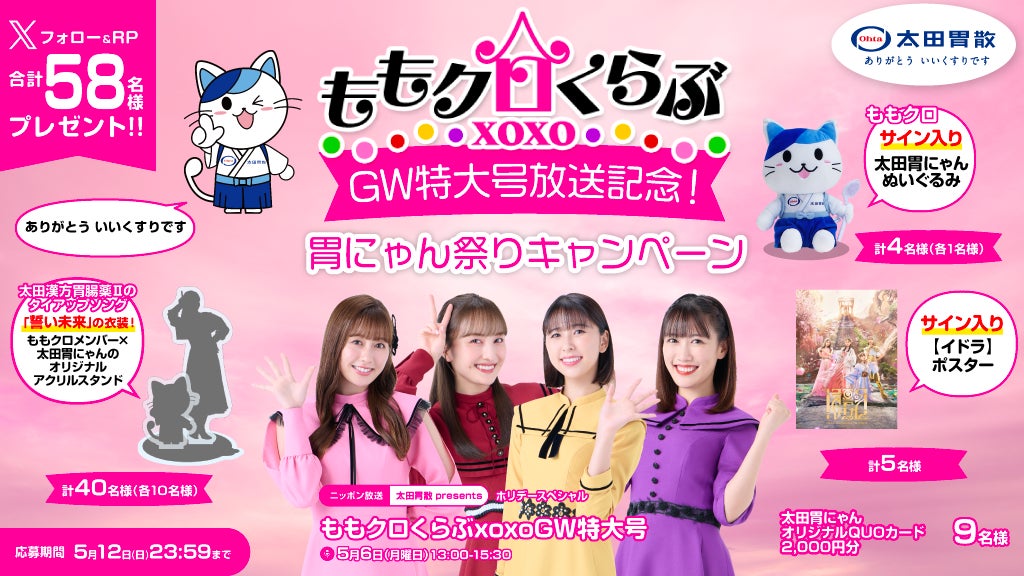 また、太田胃散提供の番組『ももいろクローバーZ ももクロくらぶxoxo GW特大号』は5月6日にニッポン放送で放送されます。