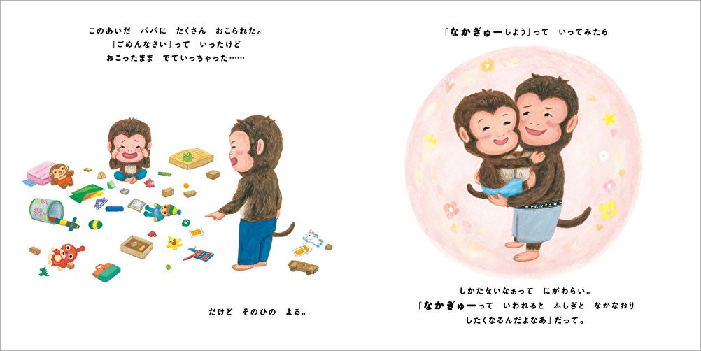 - 「なかぎゅー!」は仲直りの魔法の言葉で、子育て経験から生まれた