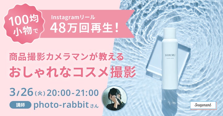 株式会社CREAVEが4月18日に公開したセミナーレポートでは、フォトグラファーのphoto-rabbitさんが登壇し、「100均小物で48万回再生!商品撮影カメラマンが教えるおしゃれなコスメ撮影」がテーマでした。