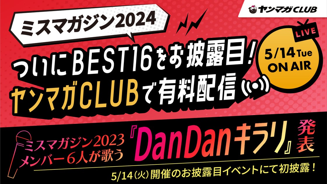 2024年5月14日、ヤンマガCLUB公式サイトで行われるミスマガジン2023各賞受賞者によるLIVE配信の概要をお知らせします。