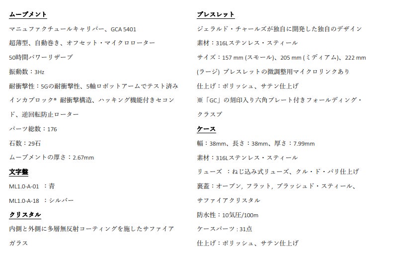 - REF: ML1.0A01(文字盤ブルー)、REF: ML1.0A18(文字盤シルバー)
