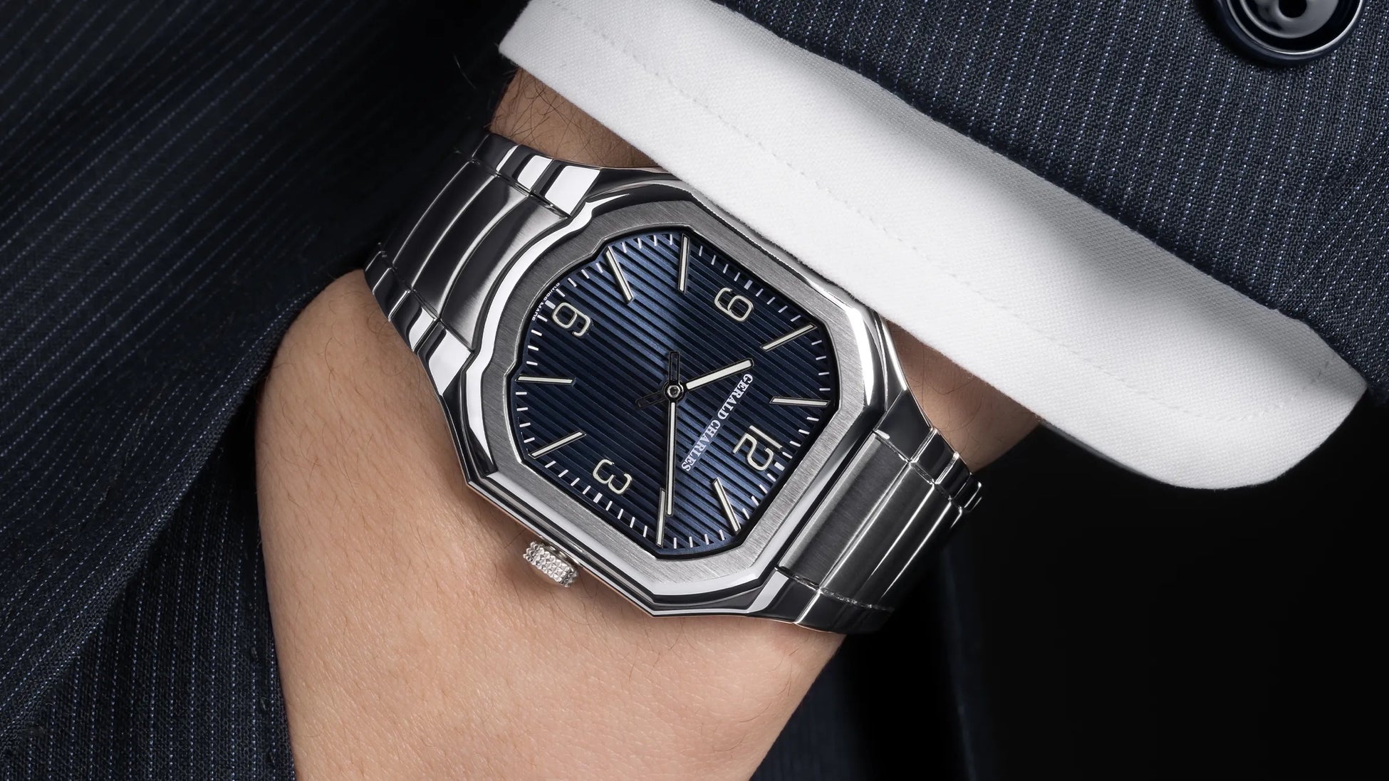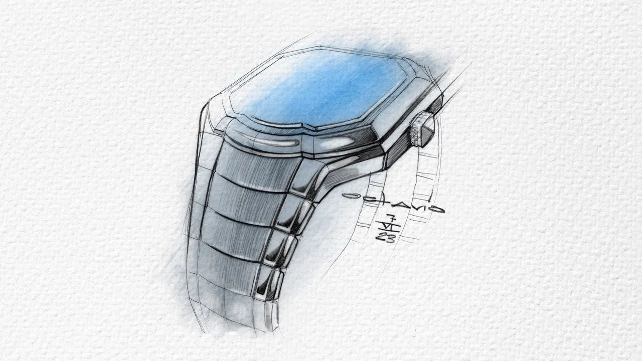 この時計は、ジェラルド・チャールズ・ジェンタ自身がデザインしたアイコニックなマエストロ・ケースの最新作で、メゾン初のアシンメトリーな一体型ブレスレットが特徴です。