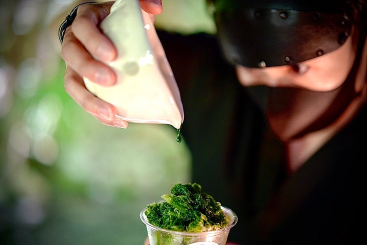 掛川のお茶産業が危機に瀕している中、忍者茶助は掛川抹茶を使用した新しい抹茶スイーツ「忍者かき氷」を考案しました。