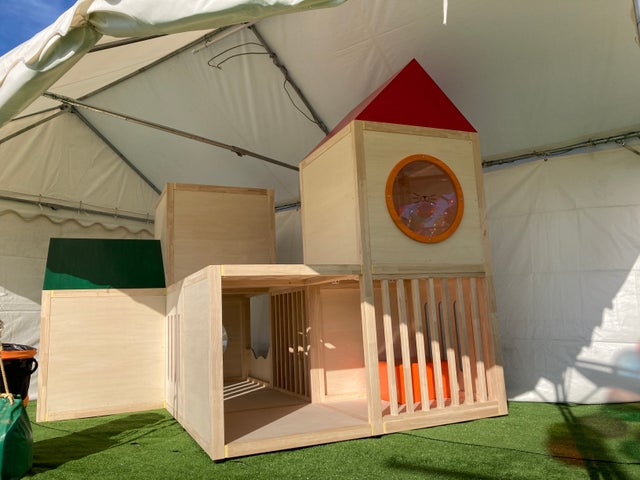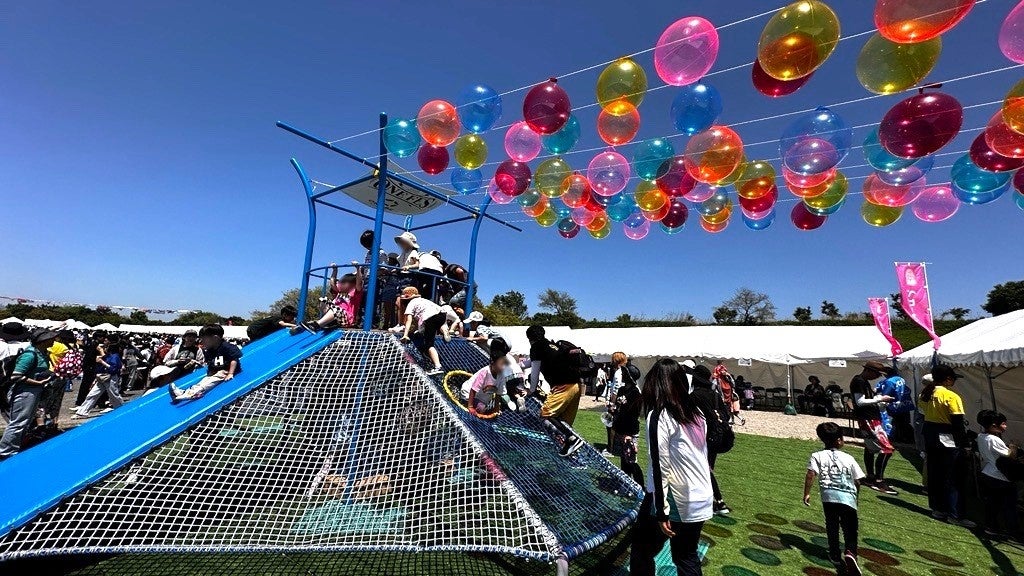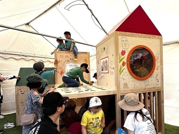 株式会社岡部は、ONEFES2024に出展しており、来場者が木製遊具に絵やメッセージを書いて共同制作するブースを設置しています。