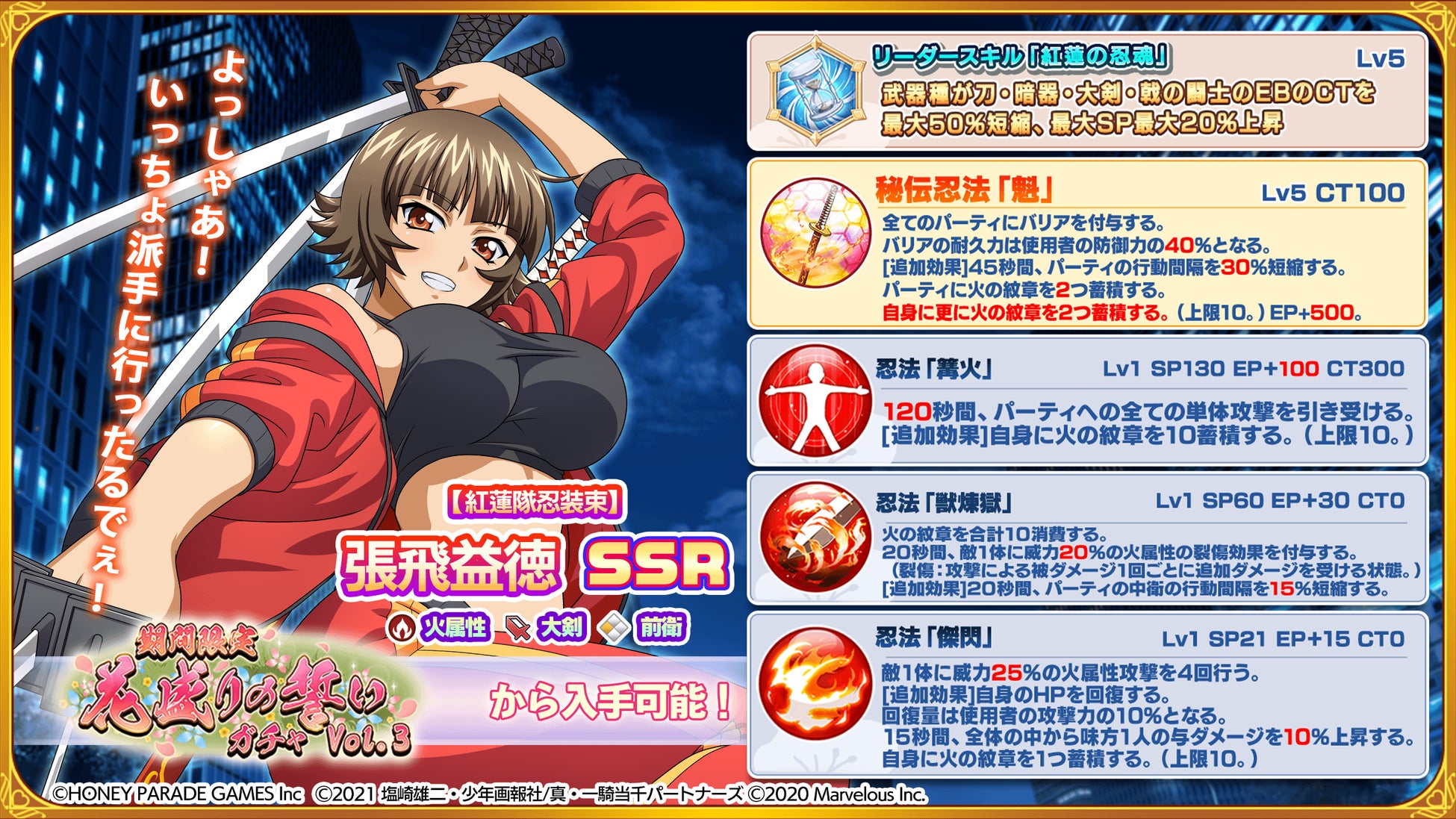 SSRの「【紅蓮隊忍装束】張飛益徳」は排出率が高め。