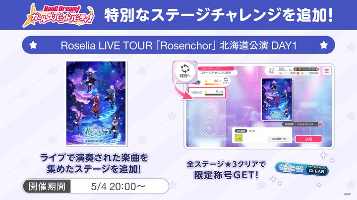 2024年5月4日(土)・5日(日)、Roseliaが北海道のカナモトホールで初の全国ツアー公演を行いました。