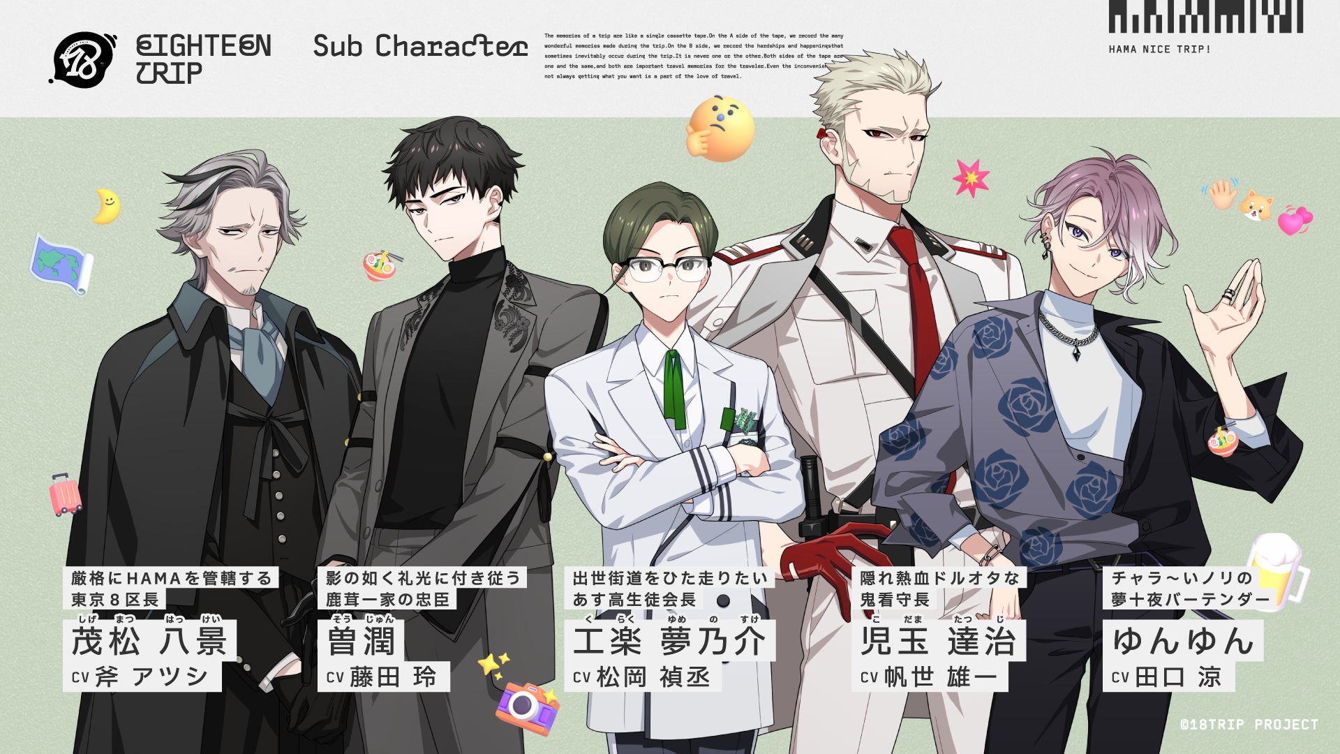 株式会社リベル・エンタテインメントと株式会社ポニーキャニオンは、5月23日(木)にリリース予定の近未来おもてなしアドベンチャー『18TRIP』について、近未来の横浜「HAMA18区」の観光区長たちを取り巻くサブキャラクターの立ち絵とキャスト情報を公開しました。