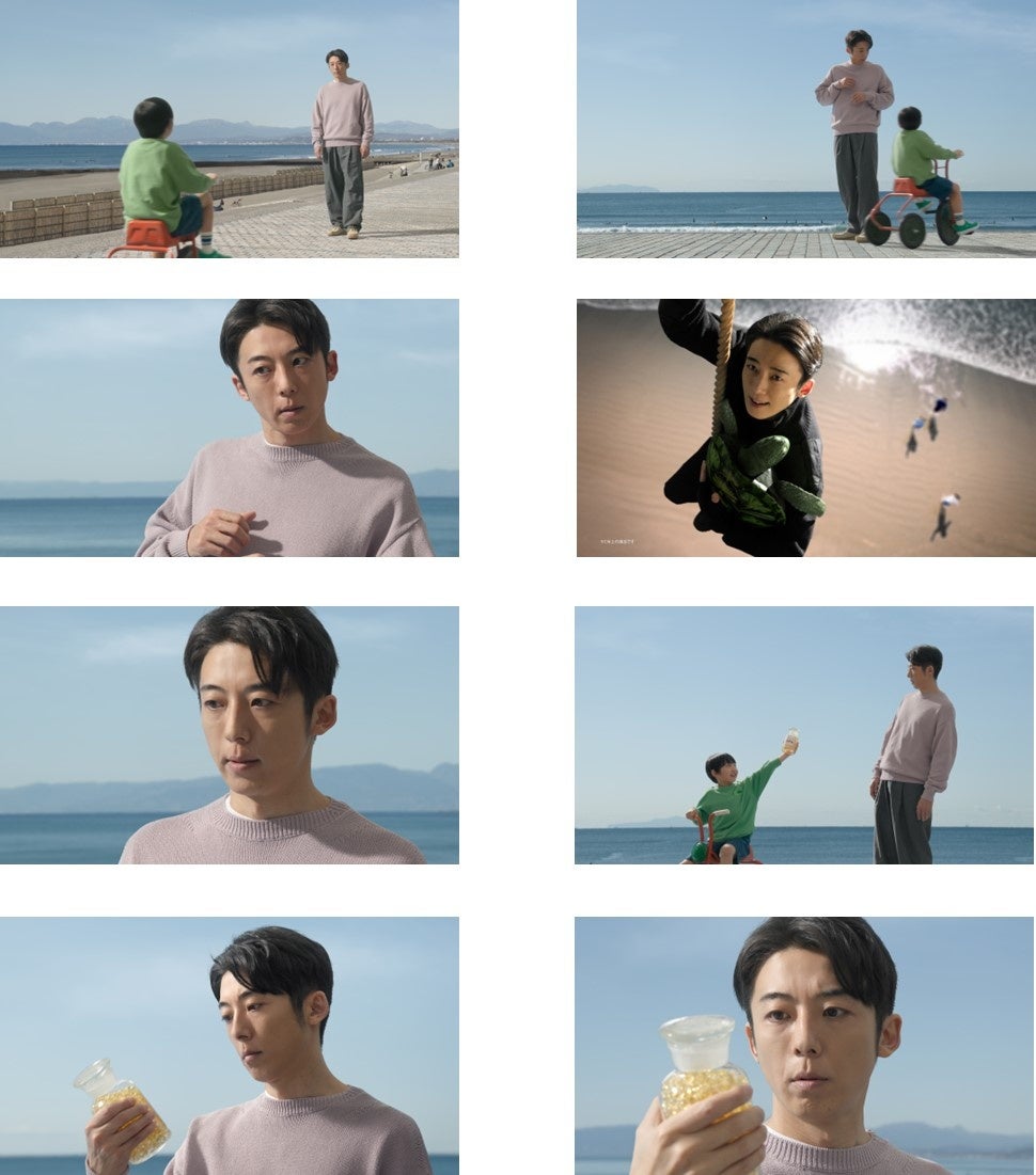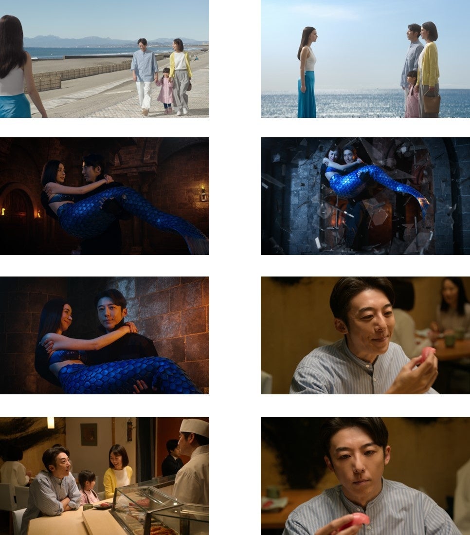 CMでは人魚やカメとの交流、ワイヤーアクションに挑戦する高橋さんの姿が見どころです。