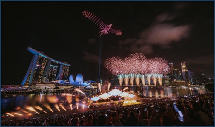 1000機のドローンが花火と共演し、50,000発の花火が打ち上げられます。