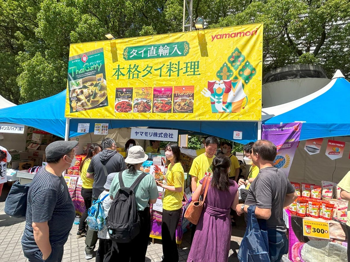 2024年のタイフェスティバルでは、ヤマモリブースがタイカレーを中心に展示され、新商品「タイカレー ゲーンパー」とリニューアルされた「ガパオライス」がおすすめとなります。