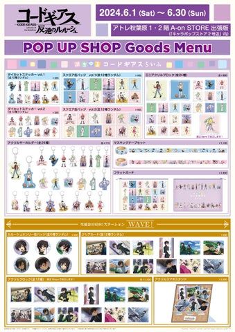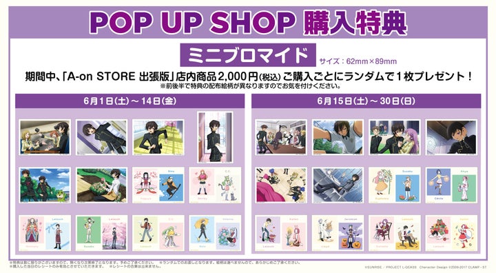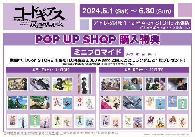 - 2024年6月1日から30日まで、アトレ秋葉原1で『コードギアス』POP UP SHOP開催