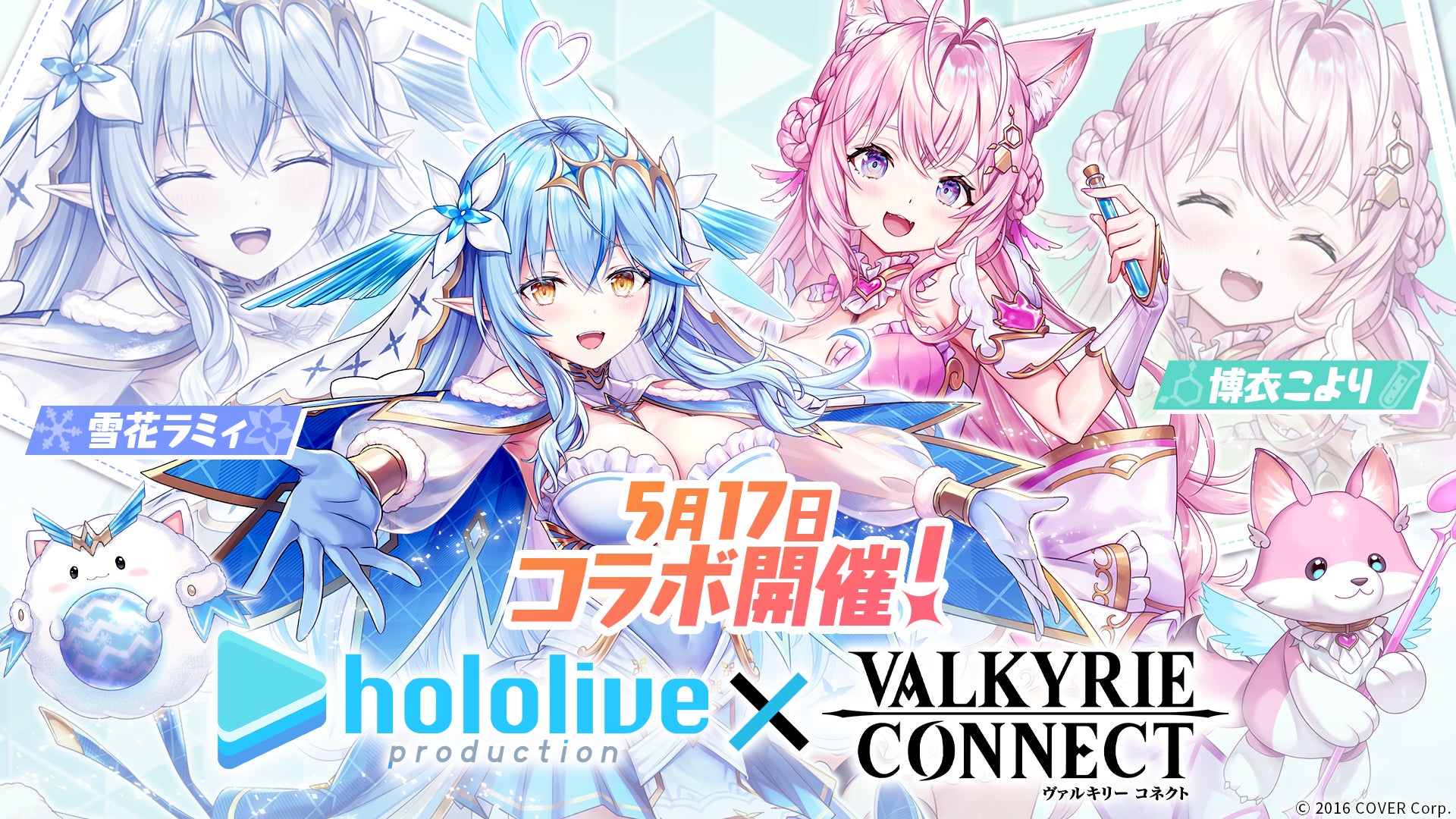 5月17日から始まるヴァルコネのコラボ第3弾では、ホロライブのVTuber「雪花ラミィ」と「博衣こより」がオリジナル衣装で登場します。