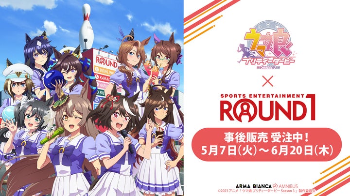 株式会社アルマビアンカは、TVアニメ『ウマ娘 プリティーダービー Season 3』×「ROUND1」のコラボキャンペーングッズの受注をAMNIBUSで開始しました。