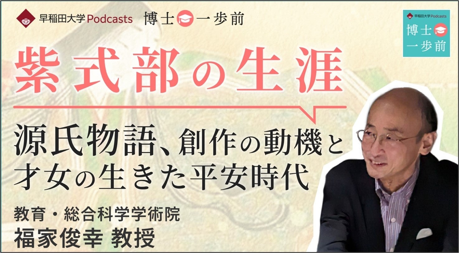 早稲田大学のPodcast番組「博士一歩前」では、国文学を専門とする福家俊幸教授をゲストに迎え、紫式部の生涯や平安社会に焦点を当てた新エピソードを配信しています。