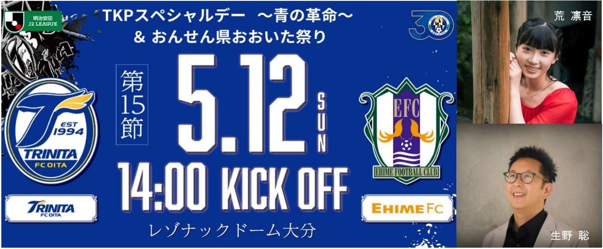 5月12日の大分トリニータ対愛媛FC戦では、特製手旗やミネラルウォーターの配布、そしてハーフタイムには歌唱イベントも予定されています。
