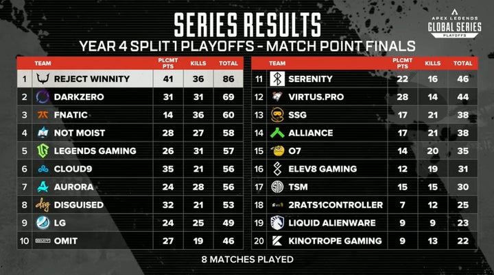 - REJECT WINNITYがALGS Year4 Split1 Playoffsで優勝