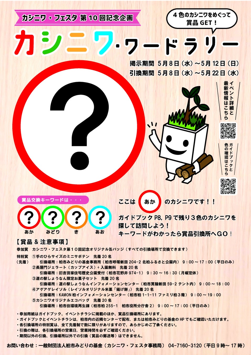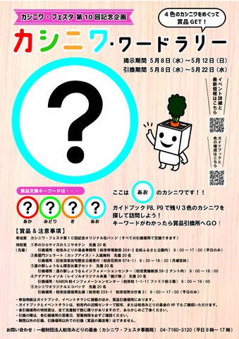 来場者はカシニワの興味深い情報を学び、第10回記念としてワードラリーや賞品引換も楽しめます。