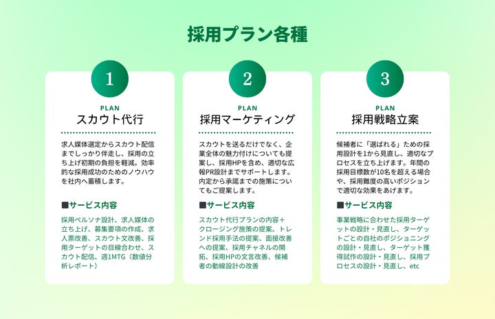 このサービスは採用業務の効率化や広報PR設計、採用コンサルティングなど幅広いサービスを提供しています。