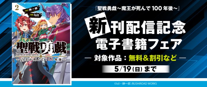 対象作品は『聖戦勇戯~魔王が死んで100年後~』1巻が110円で、連載版1~3巻が期間限定で無料。