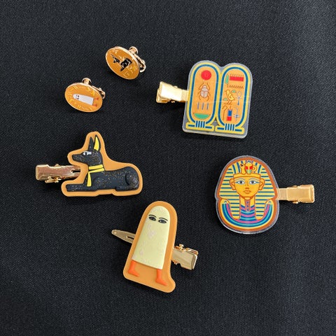 アイテムには前髪クリップやイヤリング、フェイクブック収納などがあります。