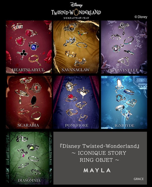 - MAYLAはファッションブランドで、『ディズニー ツイステッドワンダーランド』の各寮をイメージしたリングをプロデュース