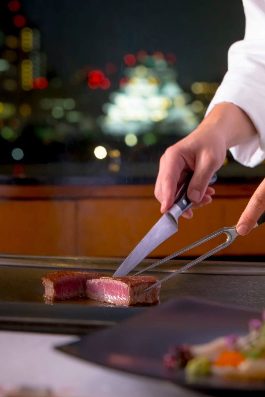 ディナーは5つのレストランから選べ、フレンチ、鉄板焼、中国料理、日本料理などが楽しめます。