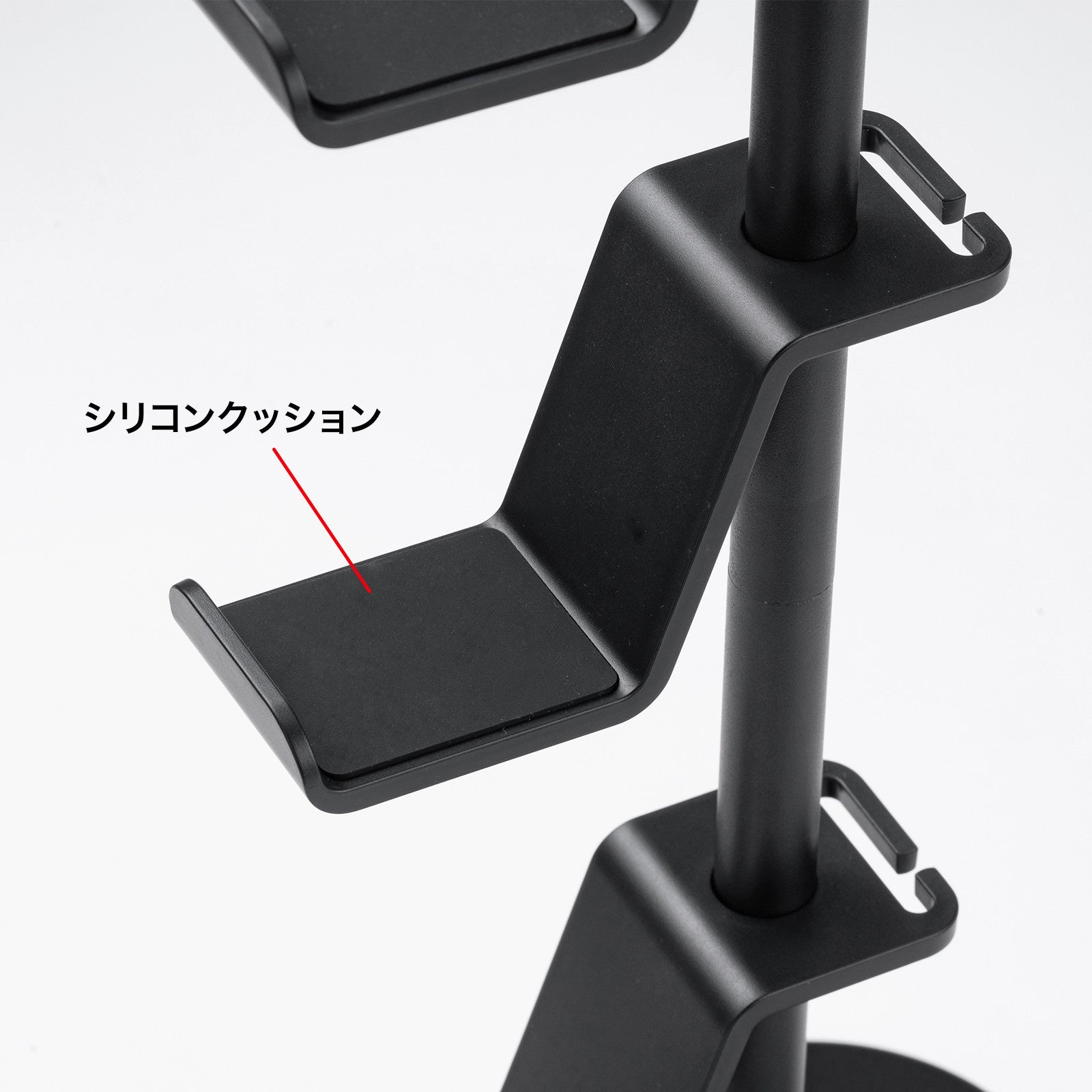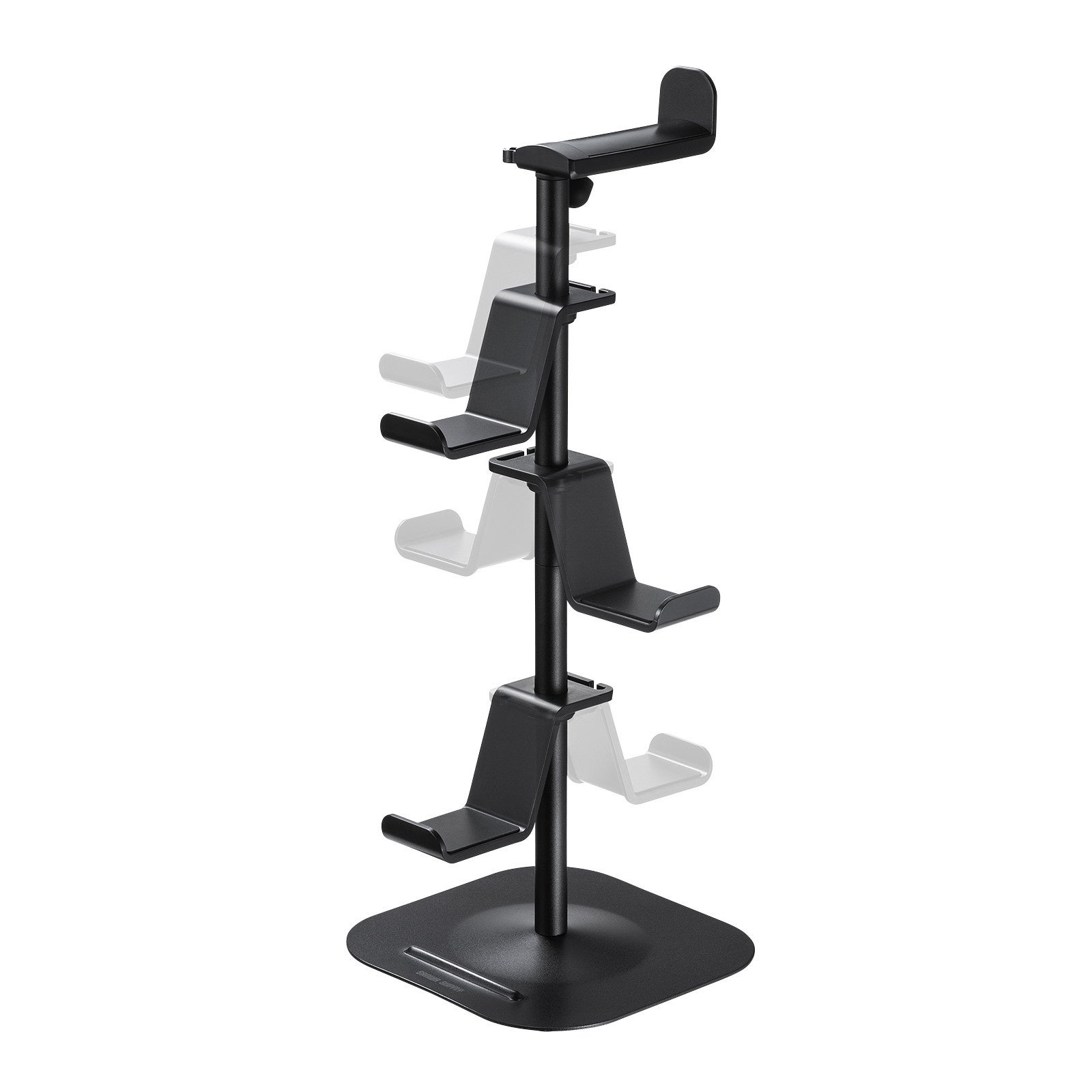 - ゲームパッド3個とヘッドホンを省スペースに収納できる、縦に収納できるため、省スペースで見た目がスッキリし、フックの高さや向きを調整することができます。、ヘッドホンホルダー搭載で、WEBカメラやLEDライトを取り付け可能です。、底面にはシリコン製の滑り止めがついており、ポールにNintendo Switchやスマホを立てかけることができます。