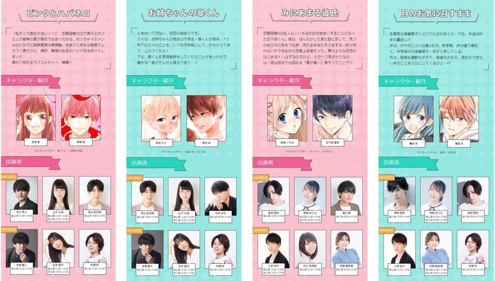 恋や男子作品を楽しめる特集もあり、出演者やグッズ情報も公開されています。