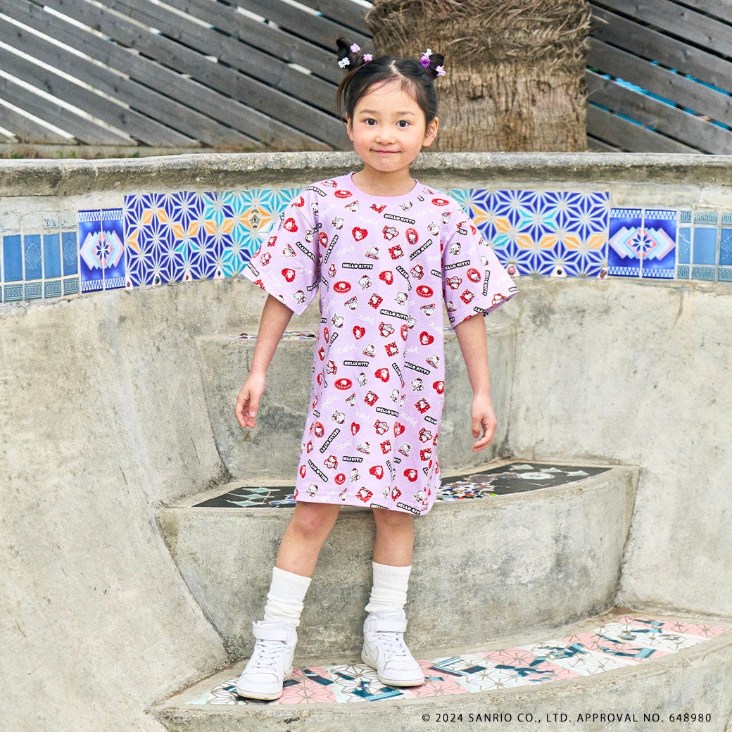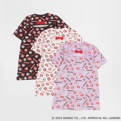 ハローキティをモチーフにした総柄ワンピースやグラフィックTシャツが登場!背中のあき具合とリボンが可愛らしい1着です。