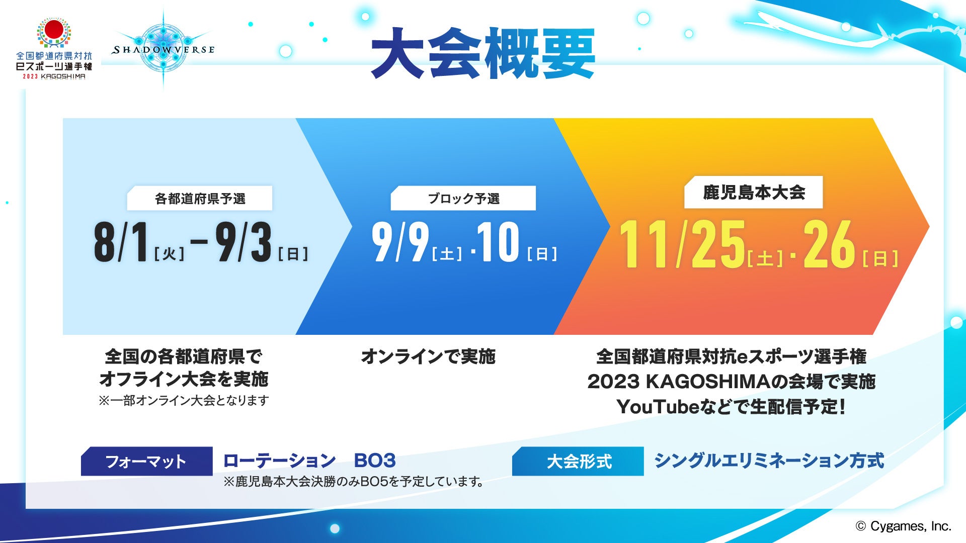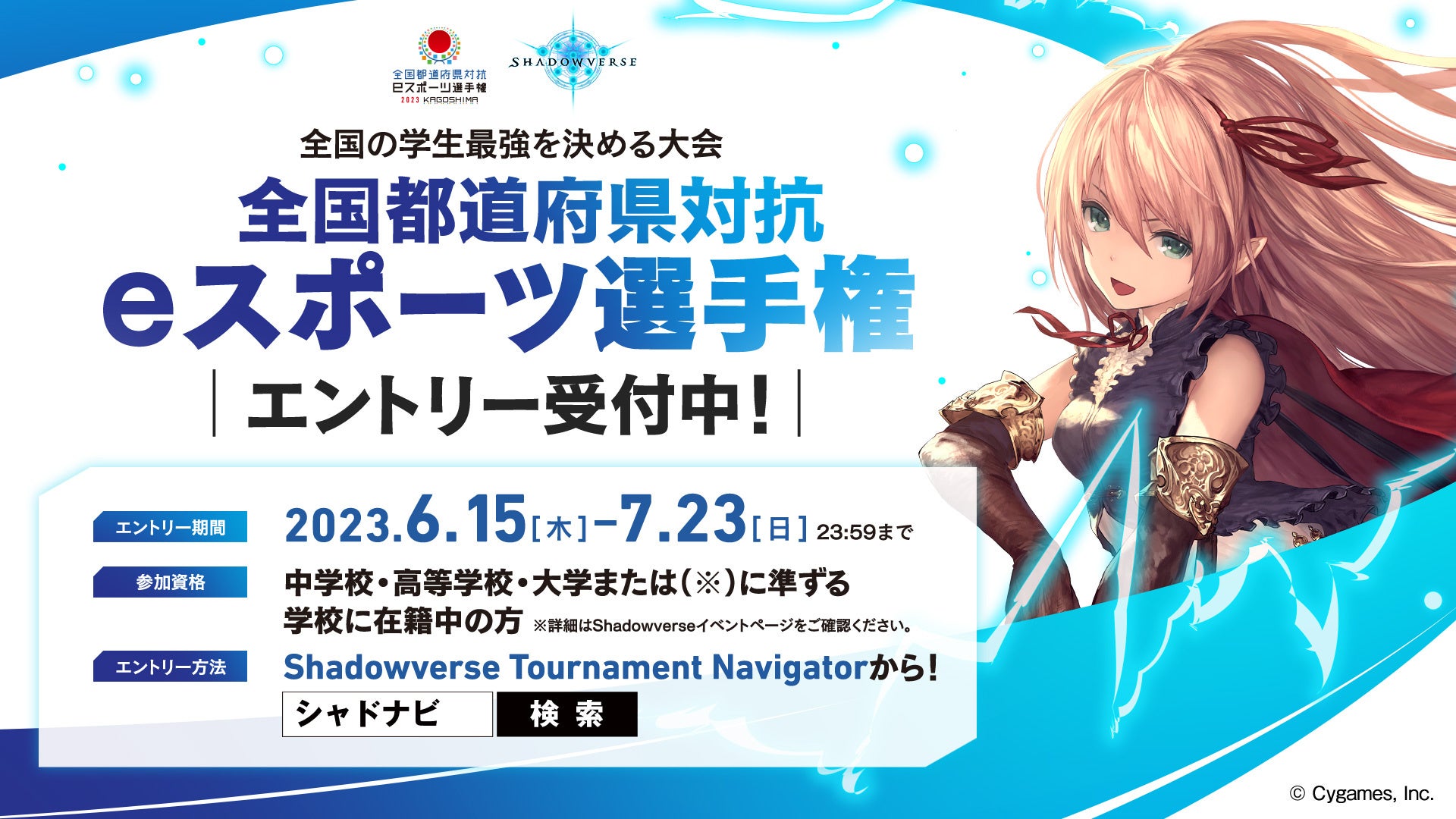 株式会社Cygamesが主催する「全国都道府県対抗eスポーツ選手権2023 KAGOSHIMA」の「Shadowverse」部門に関する情報が発表された。