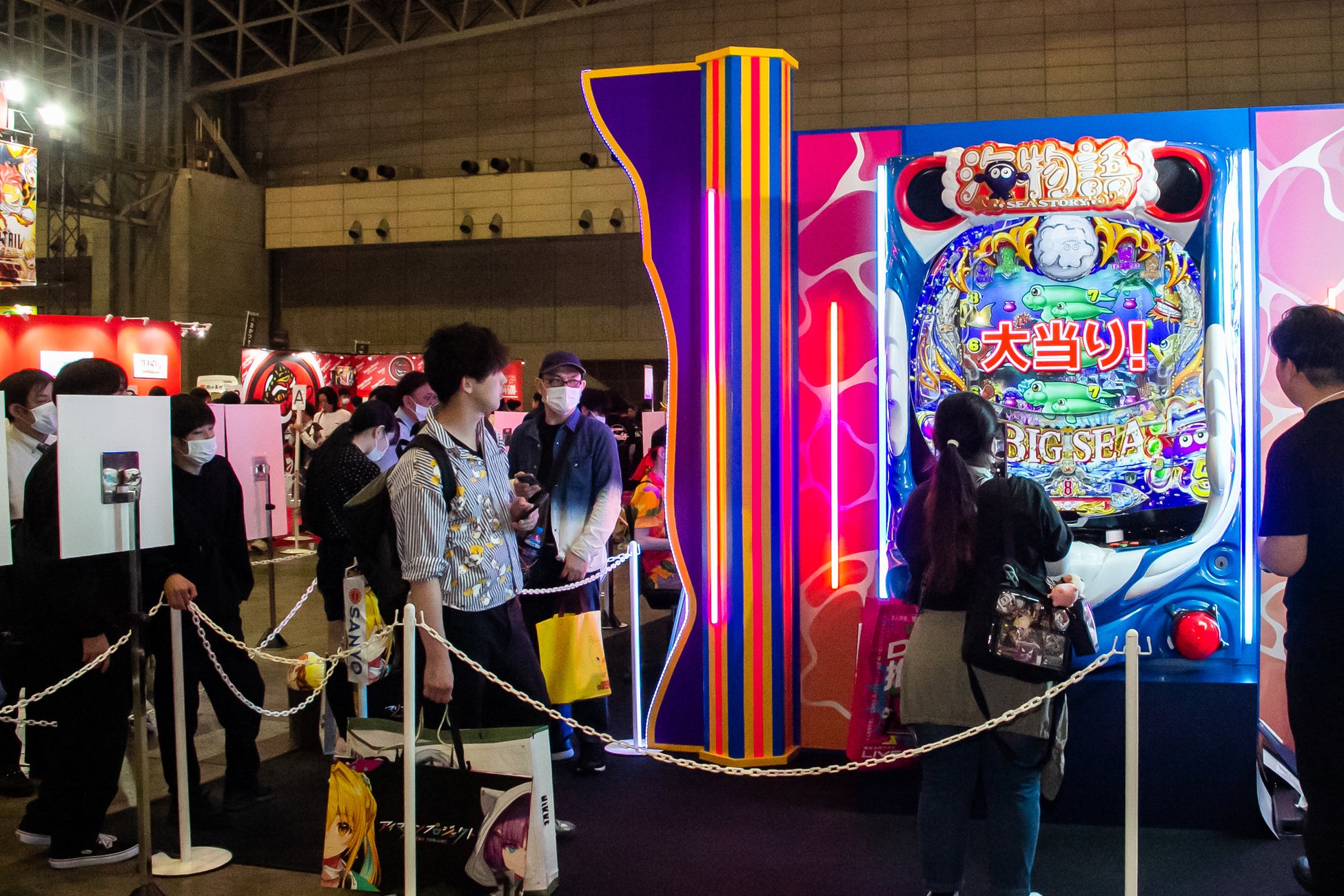 来場者は超巨大海物語体験コーナーや最新パチンコ・パチスロ試打コーナーで楽しんでいました。