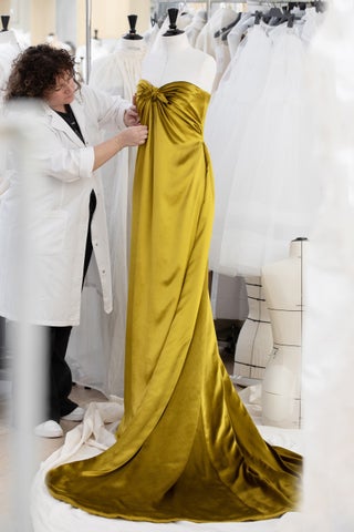 エリザベスはブロンズのシルクベルベットロングドレスを着用し、3000時間のアトリエワークが施された作品でした。